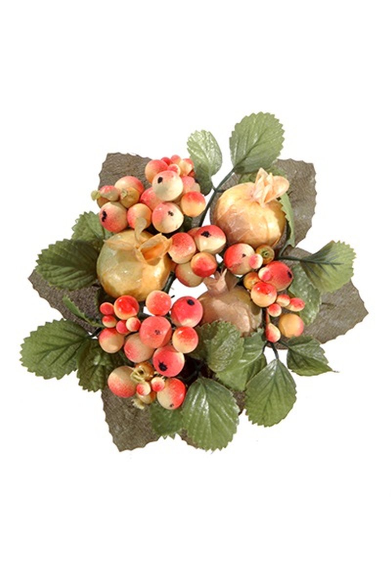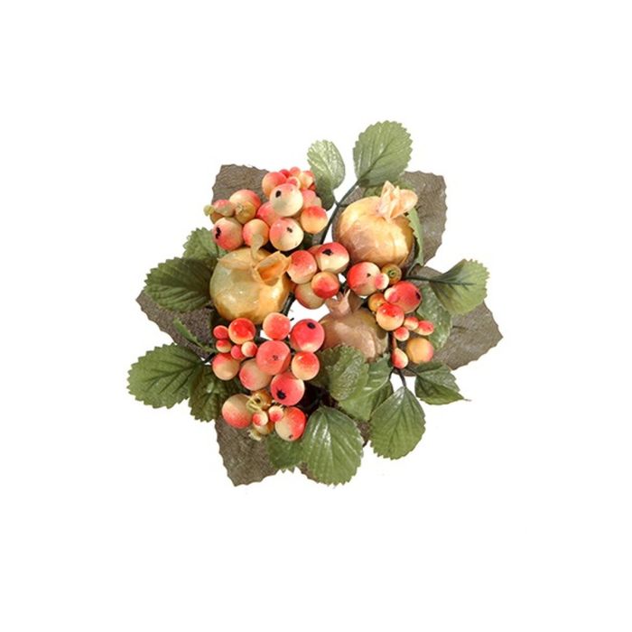 Deko Kerzenkranz STELLAN mit Schneebeeren, Knospen, orange-beige, Ø10cm