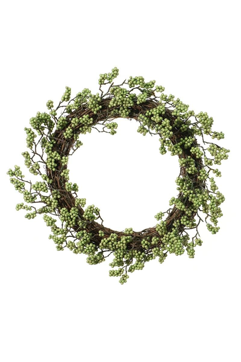- Die zahlreichen grünen Beeren sind auf einem Rattan Kranz befestigt