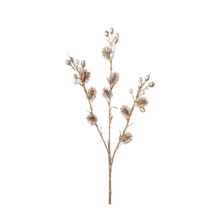Deko Kugeldistel Zweig FRONKA mit Perlen, champagner, 50cm