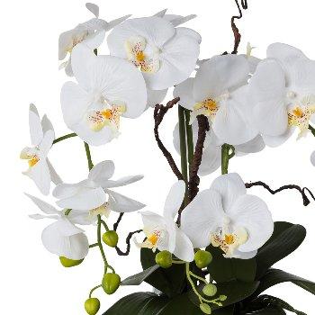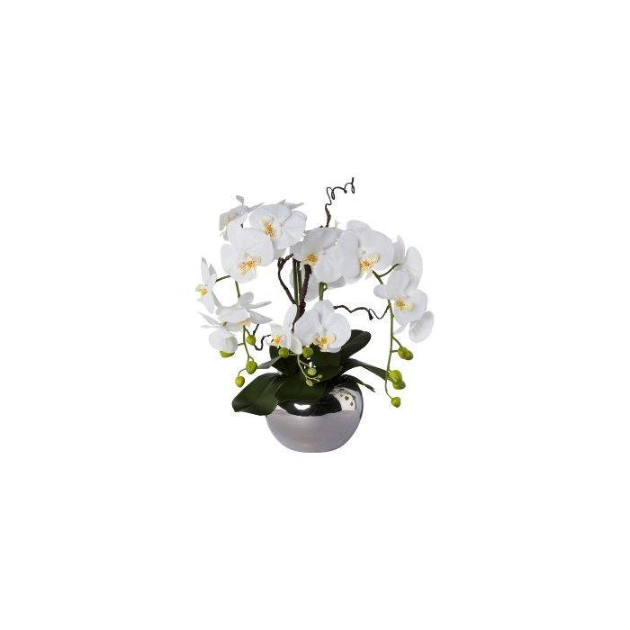 Deko Orchidee Korkenzieherweide Gesteck LULUDI, Keramiktopf silber, Wurzeln, weiß, 55cm