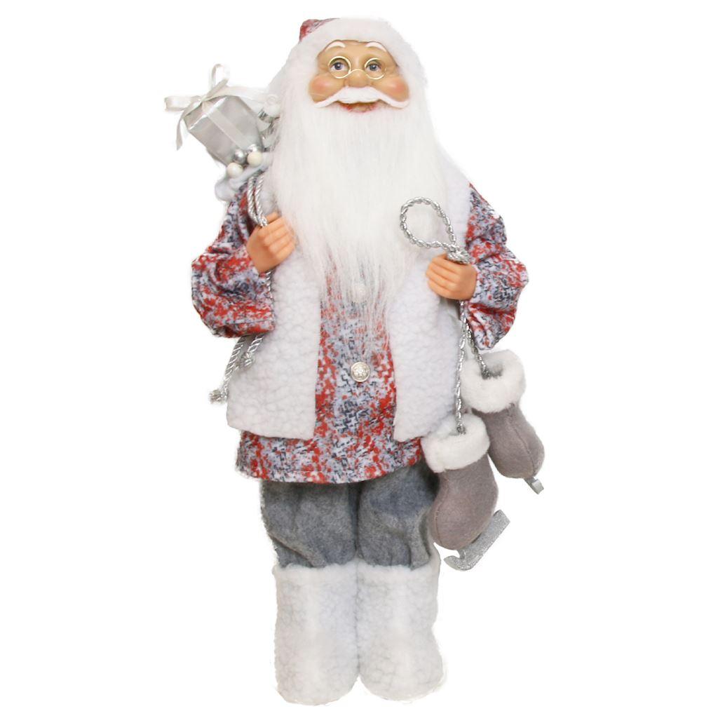 Deko Santa Claus Figur ABENZIO, Schlittschuhe, Geschenkesack, weiß-grau-rot, 22x14x45cm