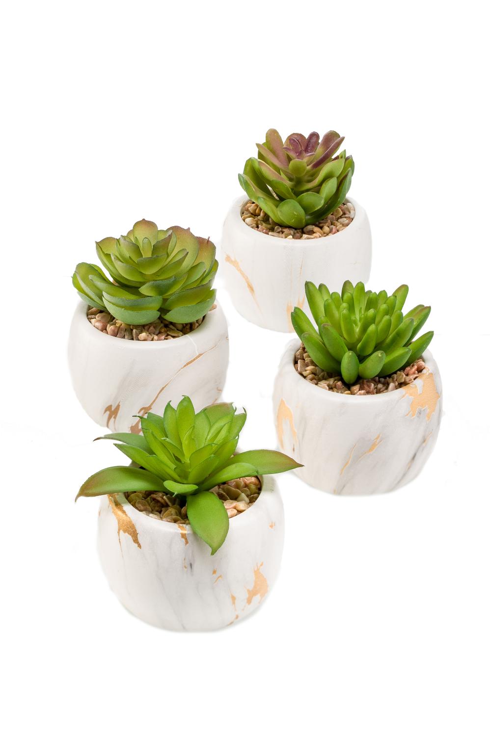Deko Sukkulenten LOYE im Marmortopf, 4 Stück, grün, 13-15cm