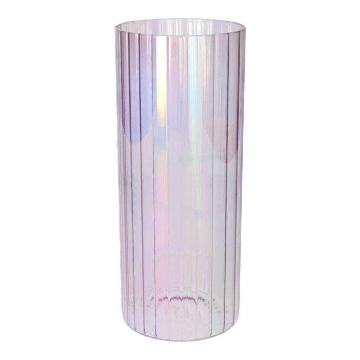 Deko Vase BLANDINA, Glas, Rillen, lila-irisierend-transparent, 24cm, Ø10cm