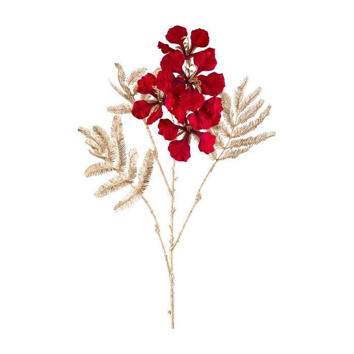 Deko Zweig Flammenbaum FROLKA mit Blüten, rot-gold, 85cm