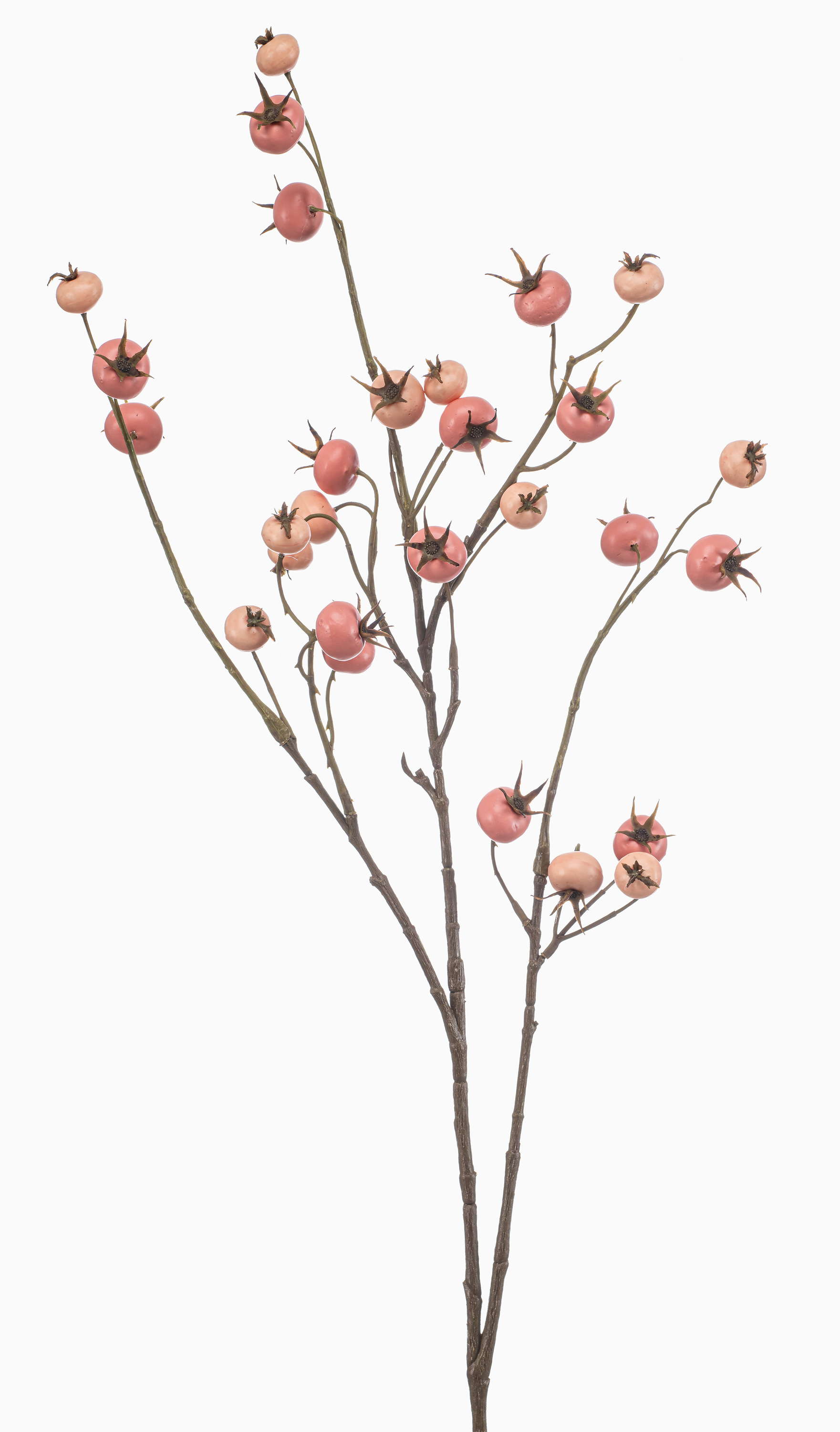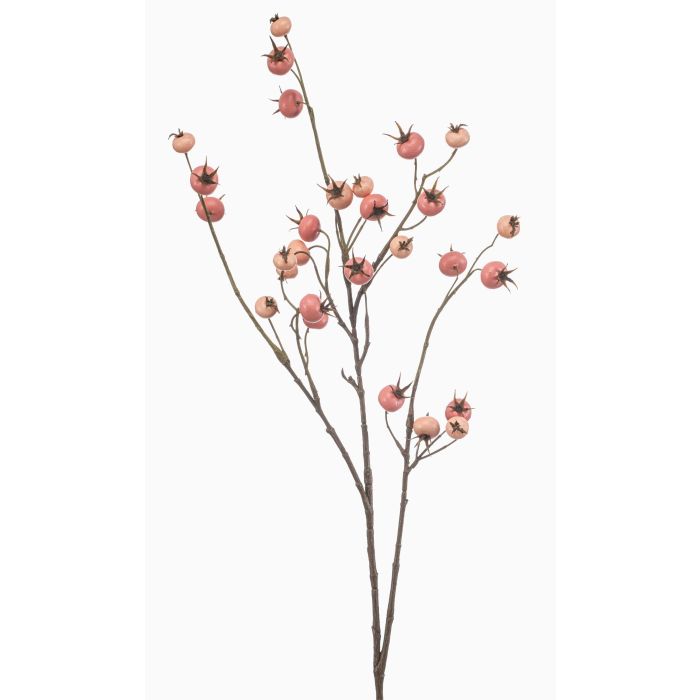 Deko Zweig Kartoffelrose FRAVON mit Hagebutten, pfirsich-rosa, 100cm