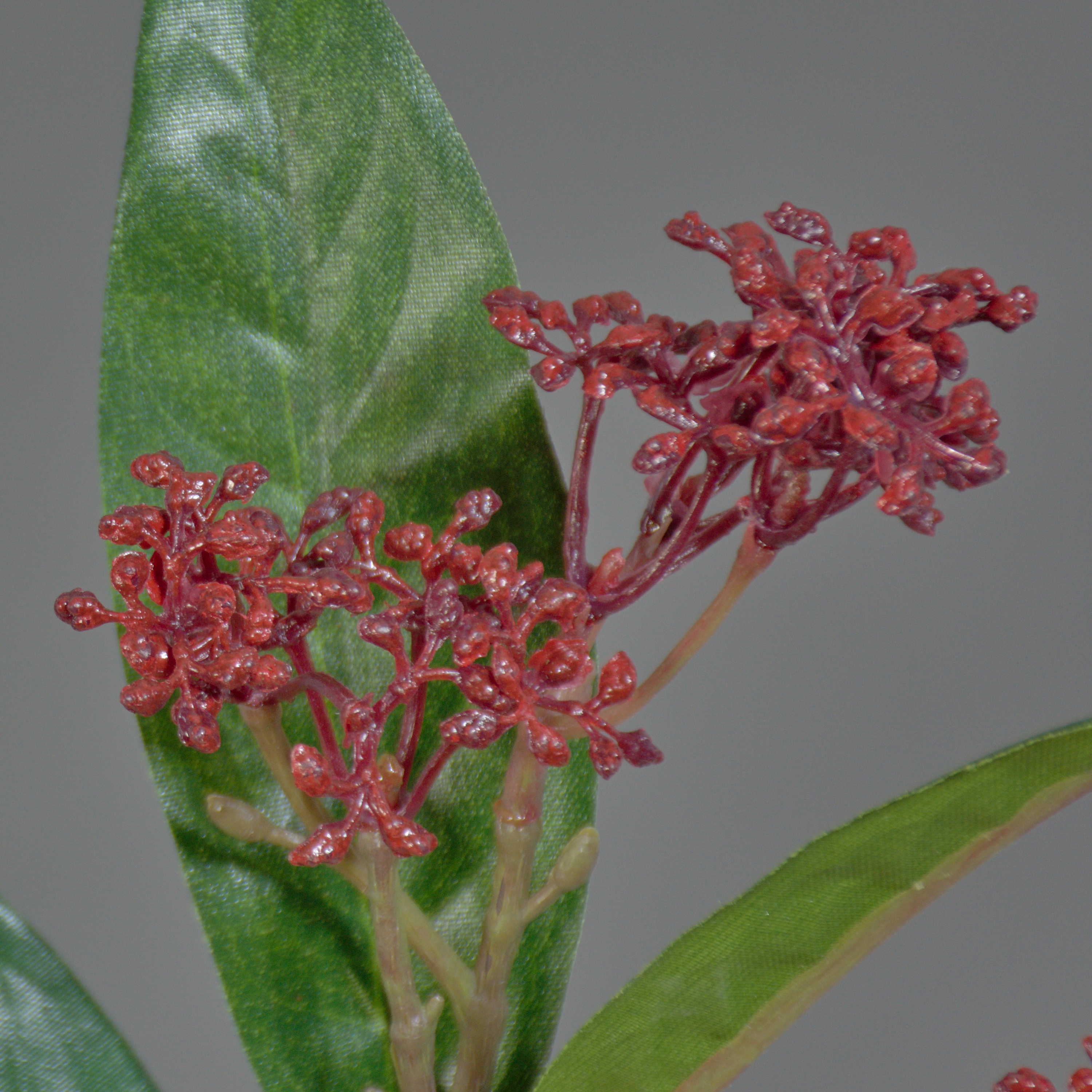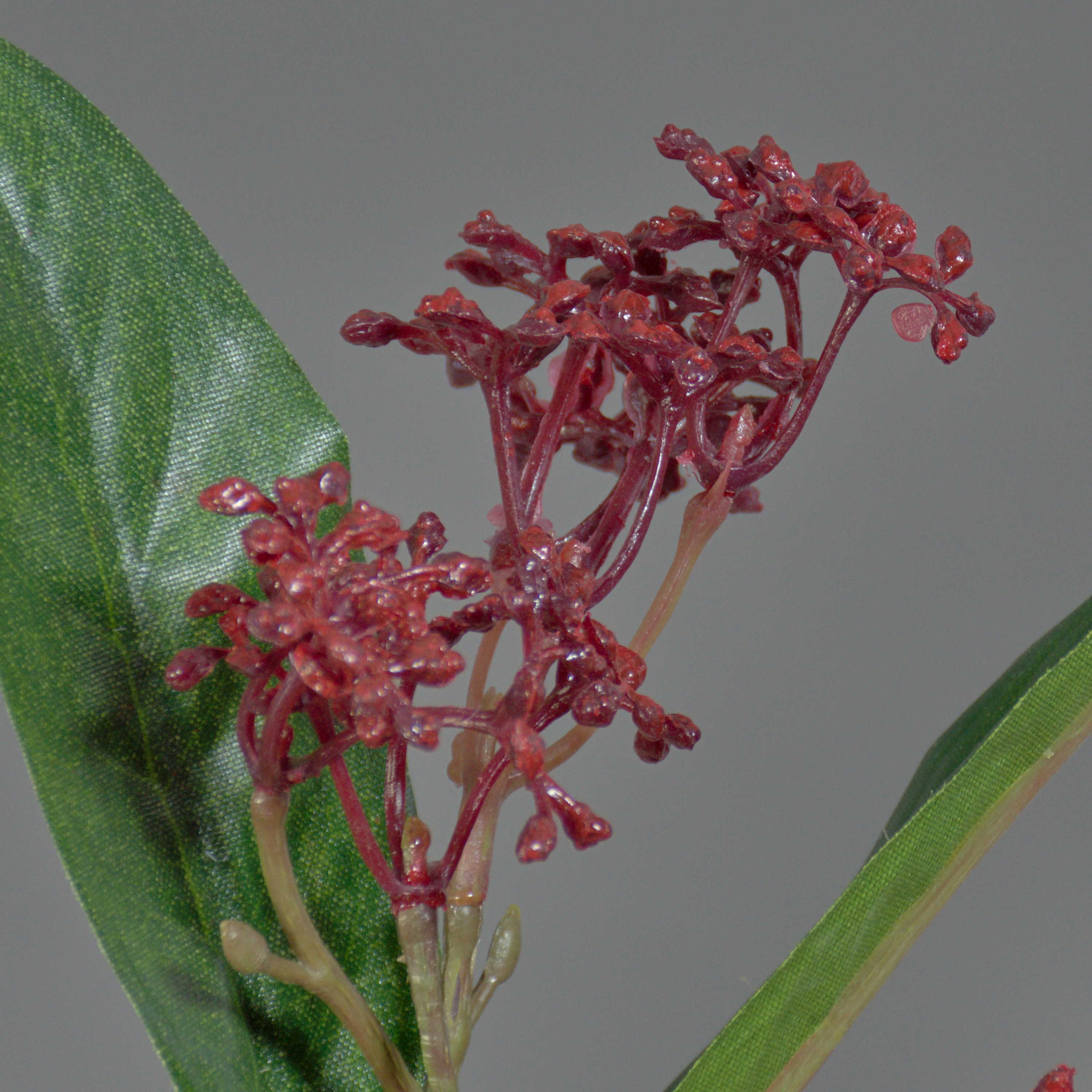 Künstliche Skimmia japonica EBONY mit einer Gesamtlänge von ca. 35 cm in der Farbe dunkelrot.