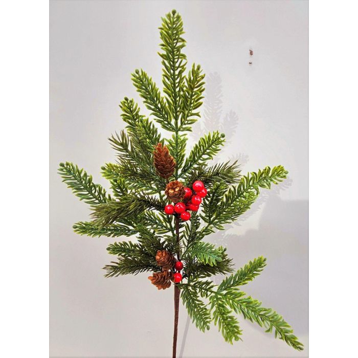 Deko Zweig VARDALIA, Tanne, Beeren, Zapfen, rot-grün, 75cm