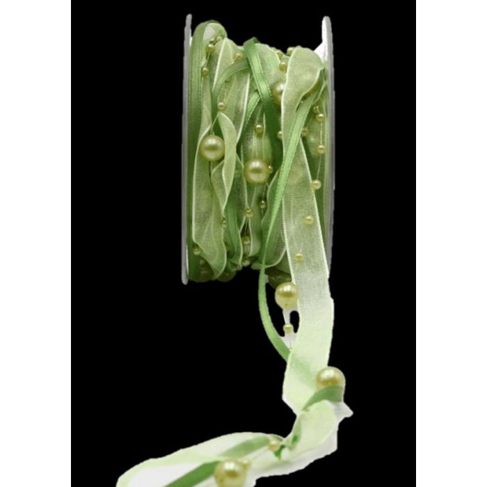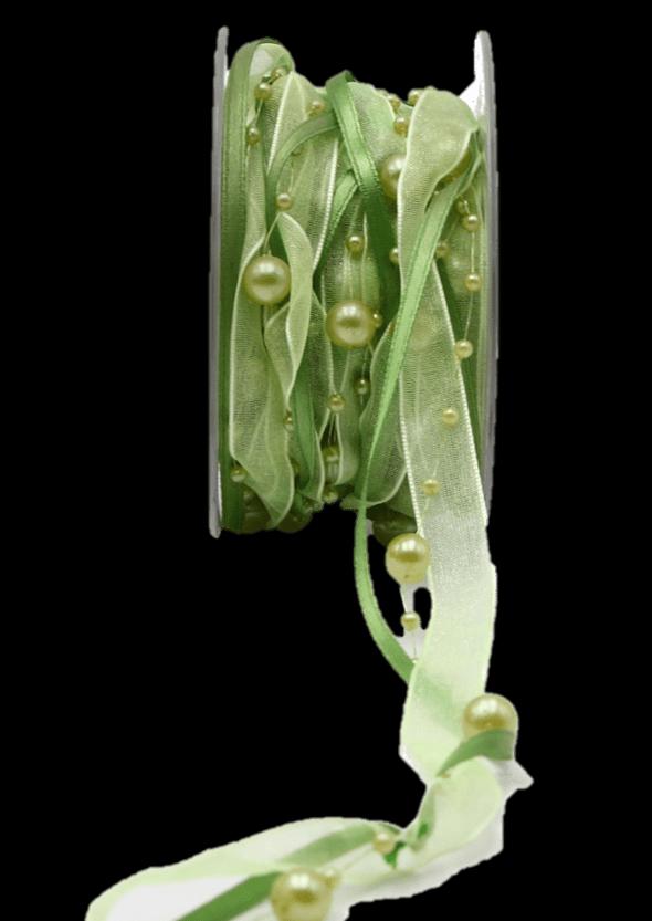 Dekoband Perlenschnur CARESA aus Chiffon und Satin, grün, 5m, 20mm