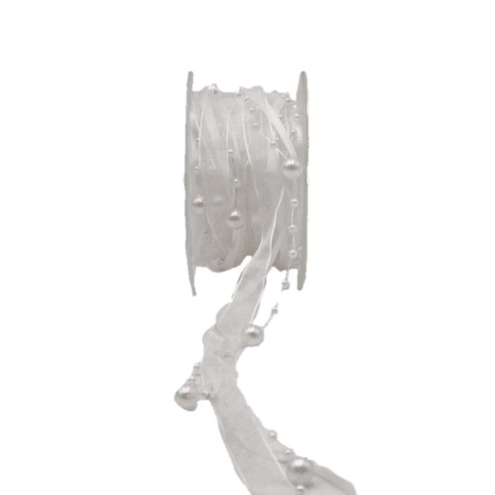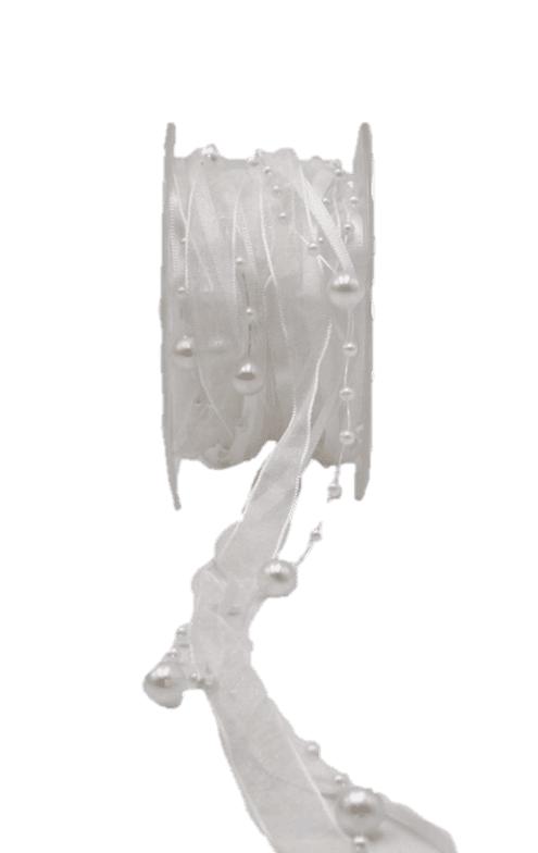 Dekoband Perlenschnur CARESA aus Chiffon und Satin, weiß, 5m, 20mm