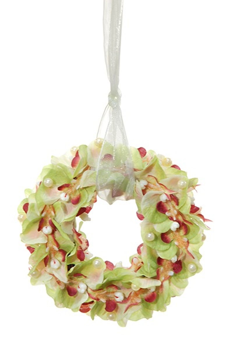 Dekokranz Phalaenopsis Orchidee VARTAN mit Perlen, grün-rosa-pink, Ø16cm