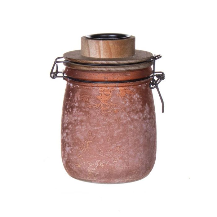 Dekoratives Drahtbügelglas ANNEDORE mit Teelichthalter, Frost-Optik, amber, 15,5cm, Ø10,5cm