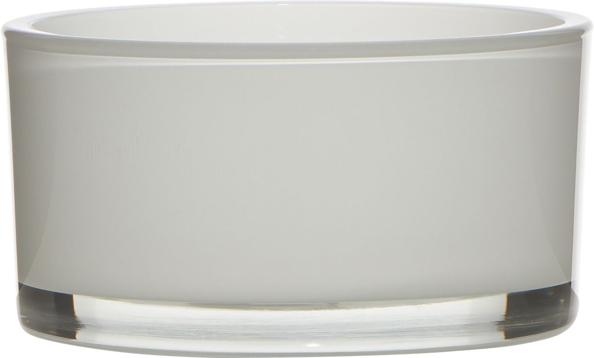 Weiße Schale aus Glas von INNA GLAS VERA EARTH. Mit den Maßen von 8 cm; Ø 15 cm ist sie perfekt für Dekorationen mit Schwimmkerzen, Sand kleinen Steinen und einer Kerze oder aber auch als Obst, und Snackschale geeignet.