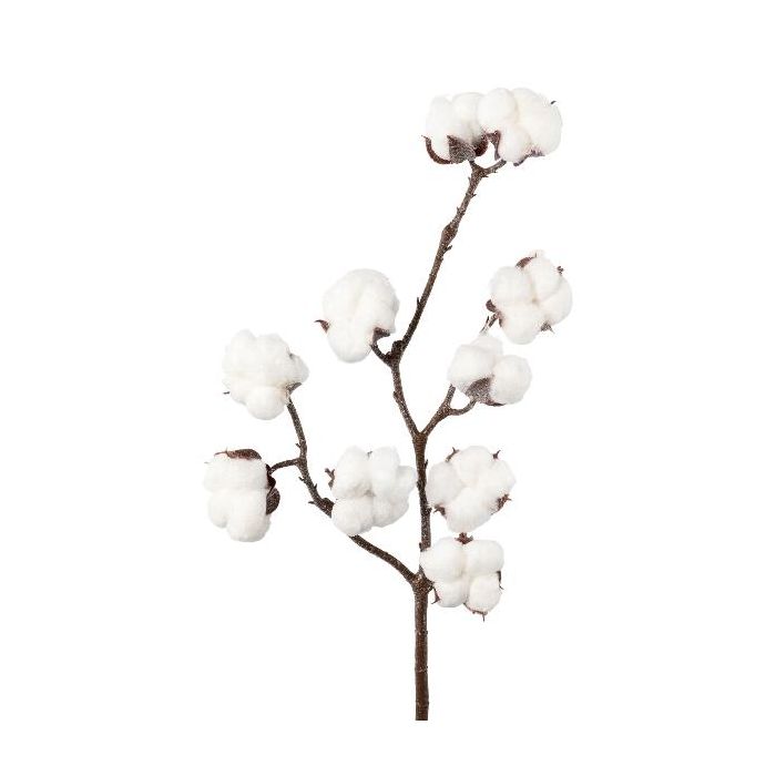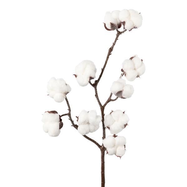 Dekozweig Baumwolle BLARIK mit Früchten, gefroren, weiß, 45cm