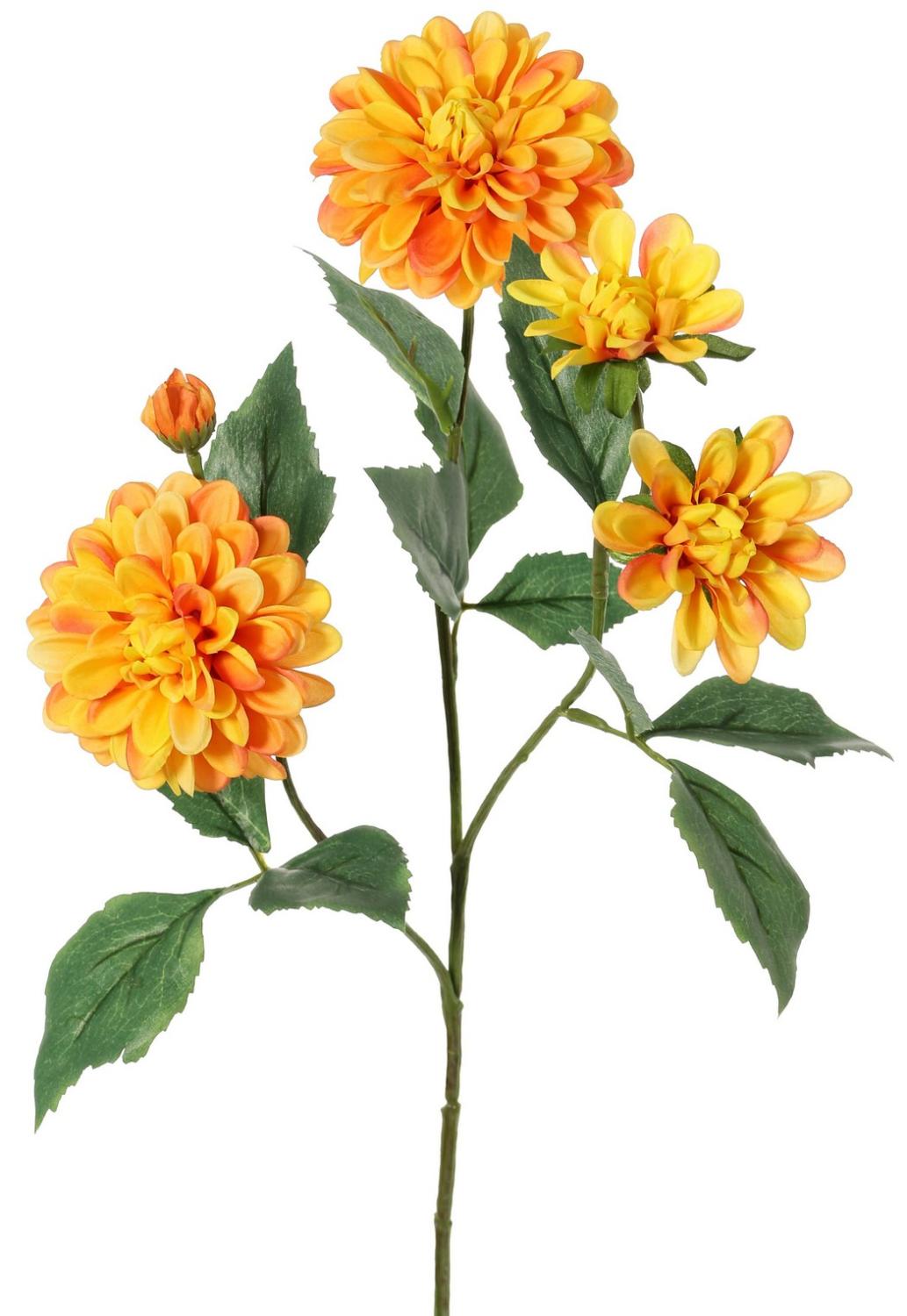 Dekozweig Dahlie künstlich QUINKA, orange-gelb, 70cm