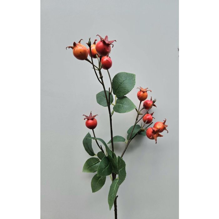 Dekozweig Kartoffelrose LOPUNY mit Hagebutten, orange, 70cm