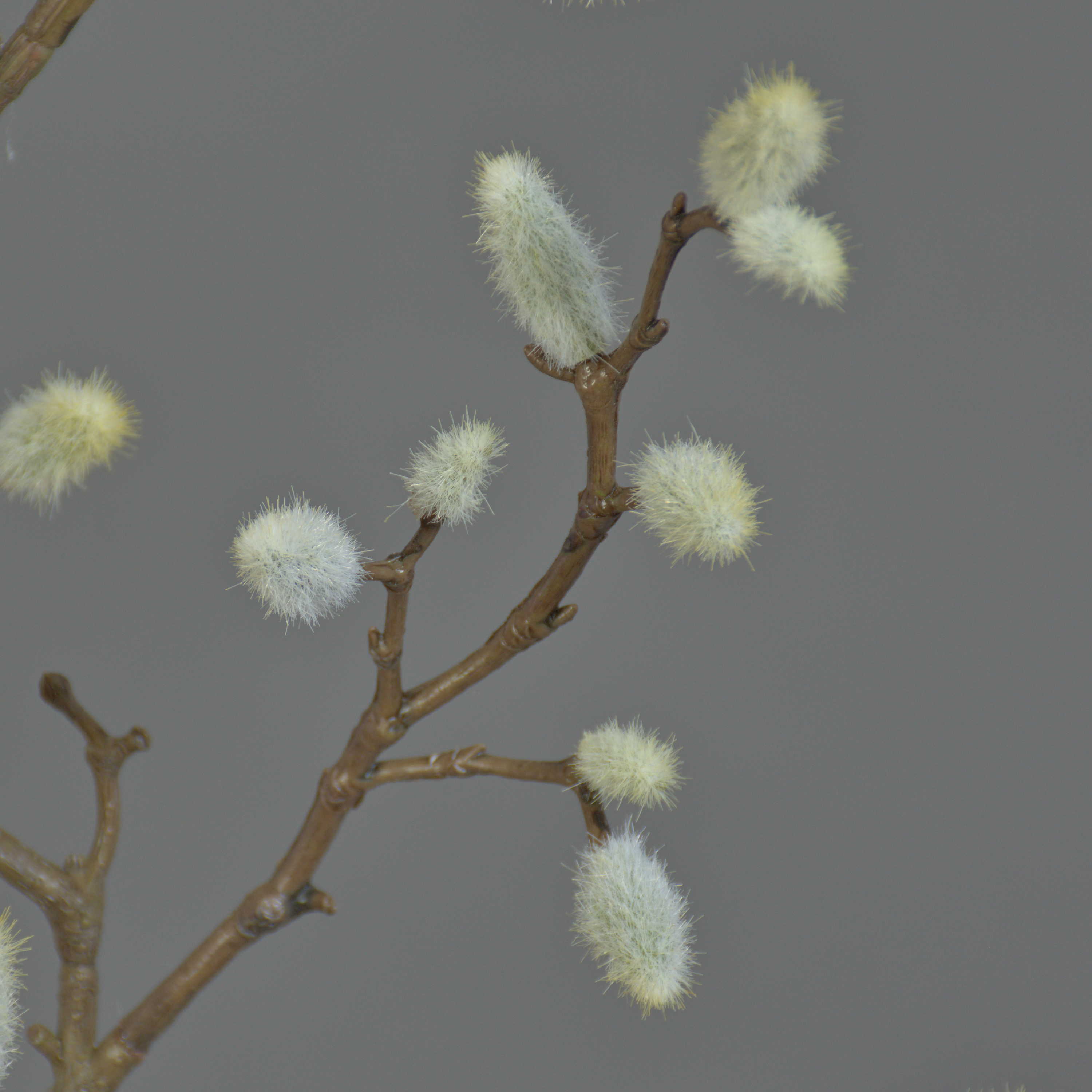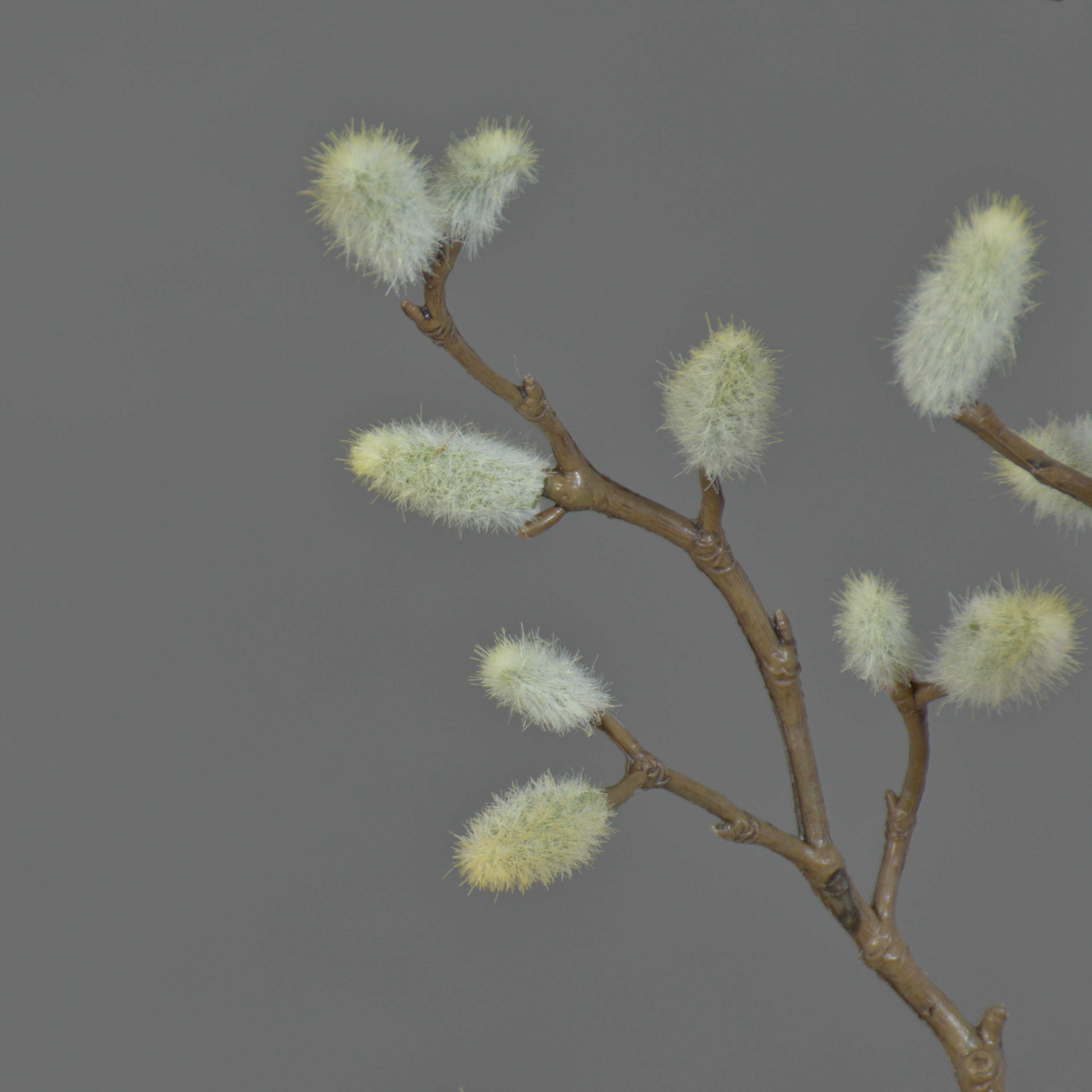 Der fein gearbeitete Magnolien Kunststoff Zweig KOTORI hat ca. 45 graue Kätzchen und einer Gesamtlänge von ca. 75 cm.