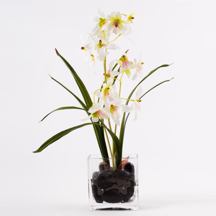 Dendrobium Orchidee künstlich ZUZA in Dekoglas, weiß-grün, 35cm