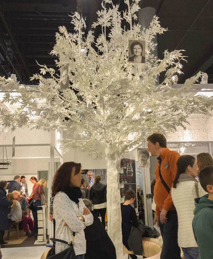 Hier gab es für gefühlt jede größere Stadt, jede Region, aber zumindest für jedes Land einen eigenen Reiseführer. Gerne würden wir hier den ganzen Tag stehen und uns Länder anschauen, die wir gerne noch entdecken wollen. Aber zu lange sollten wir auch hier nicht vor uns hinträumen, denn 172.000 qm mit Büchern, Ständen, Bühnen und auch Kunstpflanzen wollen entdeckt werden. Denn künstliche Pflanzen sind auch auf dieser Messe als Dekoration sehr beliebt. Einer der größten künstlichen Pflanzen auf der Buchmesse Frankfurt war wohl dieser knapp 4 Meter hohe, komplett weiße, Ahornbaum.
