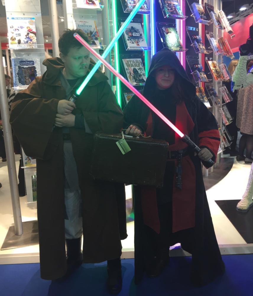 Und zu sehen gab es wirklich sehr viel. Denn neben Ausstellern und Autoren tummelten sich vor allem im Manga-Teil der Ausstellung viele Cosplayer. Denn dieser Verkleidungstrend kommt, wie der Ursprung vieler seinen Charaktere, aus Japan, wo Mangas schon fast zur Kultur gehören. Doch bei diesem Trend sind alle Figuren aller Welten und Galaxien erlaubt und so landete unser Koffer in den Fängen der dunklen Macht.