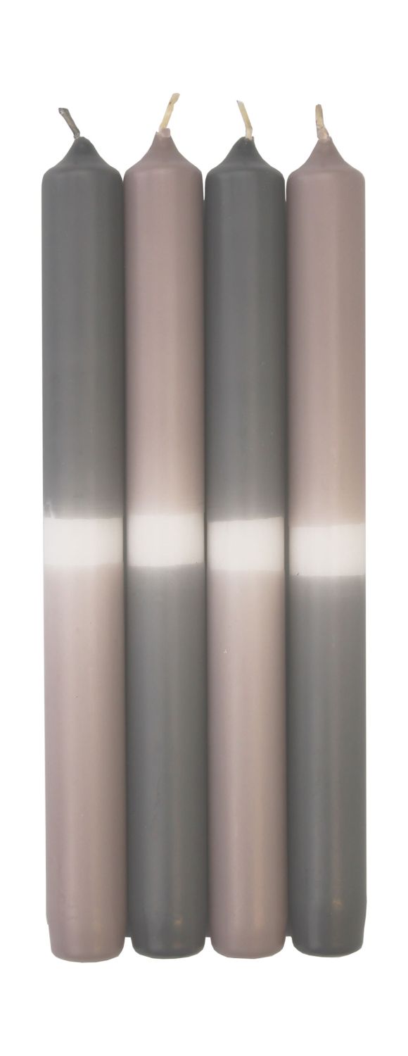 Dip Dye Tafelkerzen LISSITA, 4 Stück, grau-silbergrau, 25cm, Ø2,3cm, 11h