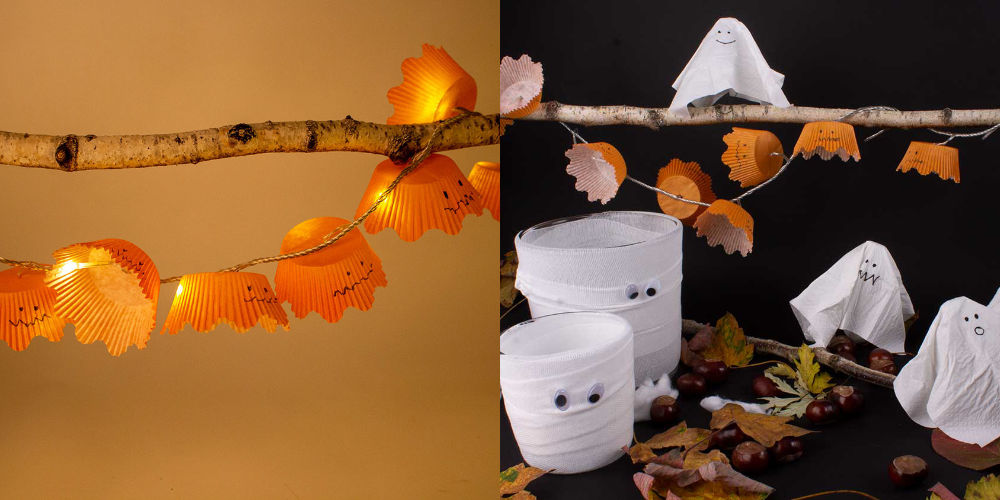 Tipp 1: Ihr könnt zusätzlich auch die kleinen Gespenster aus unserem letzten Blog-Beitrag mit an die Lichterkette basteln.
