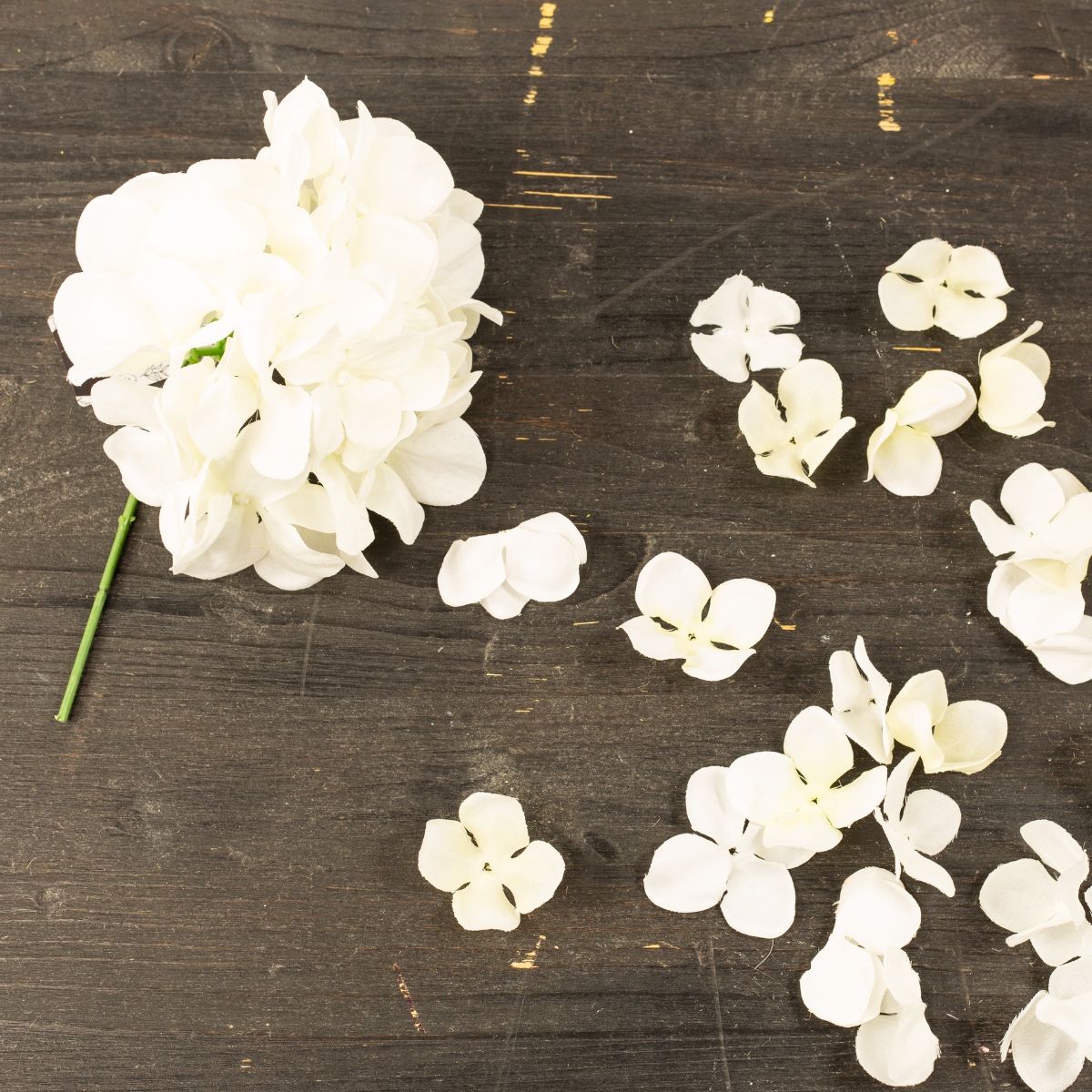 2. Die einzelnen Blüten von der Hortensie entfernen. Man braucht nur die Textilblätter.