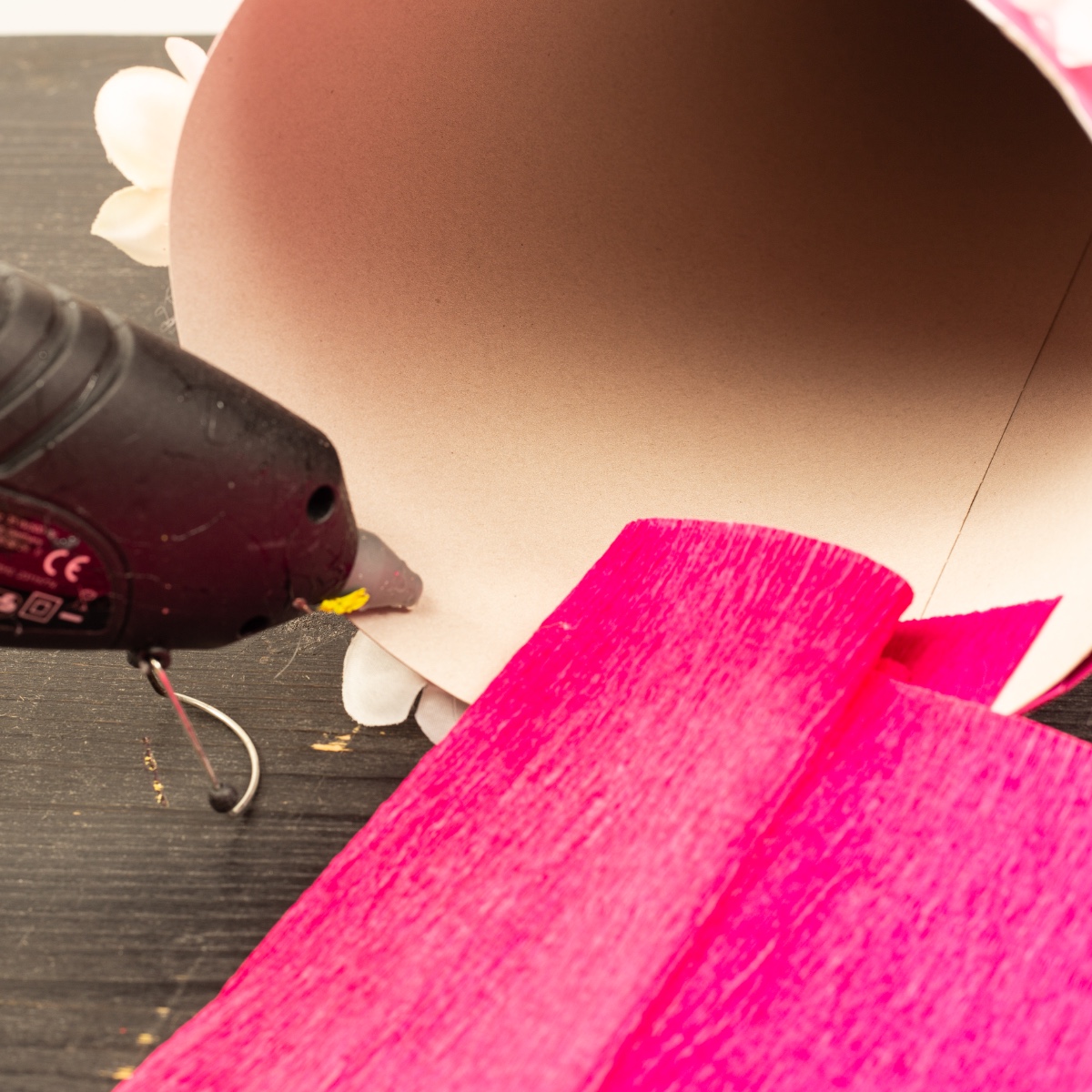 4. Das Krepppapier innen an der Schultüte festkleben. Etwas überlappen lassen, damit später der Inhalt nicht rausfällt.