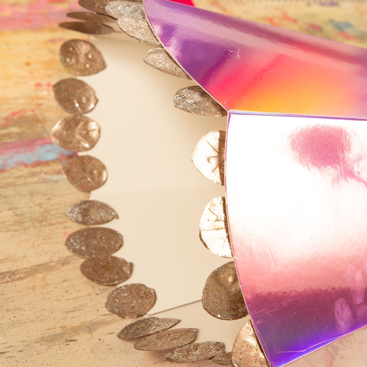 7. Der obere Bereich der Schultüte wurde mit den restlichen Fischschuppen verziert.