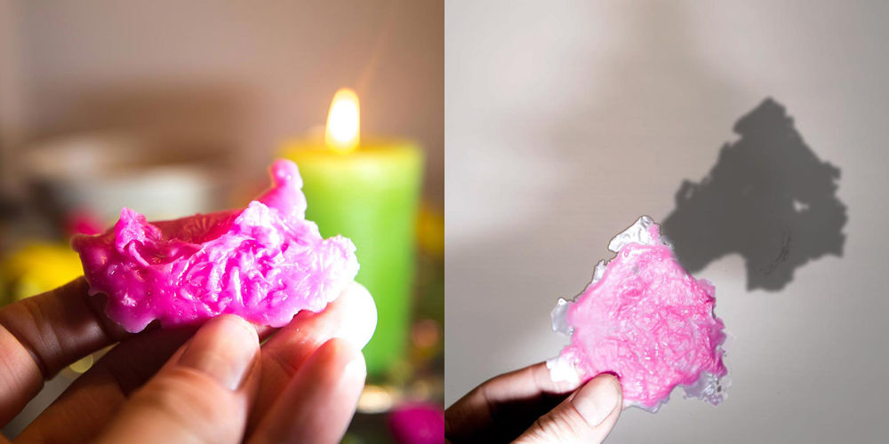 - Die Deutungen können jetzt an dem Wachsstück selbst vorgenommen werden. Mit einer Taschenlampe kann man aber auch das Wachsstück als Schatten an die Wand projizieren und die Deutungen so vornehmen.