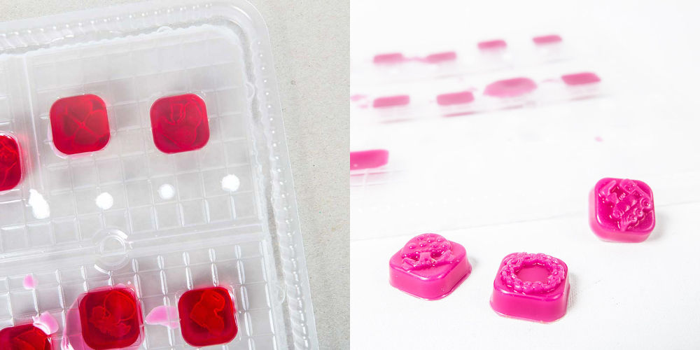 - Nach kurzer Zeit sind die Wachsnuggets fest und können aus der Form genommen werden.
