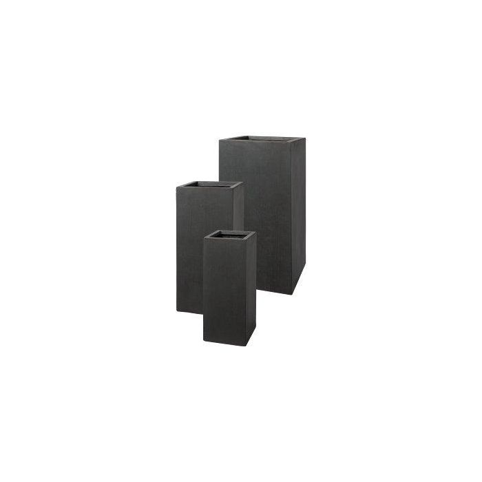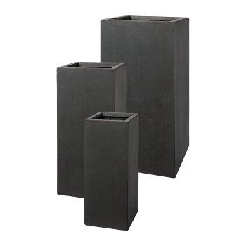 Eckige Pflanzensäule KIRIMA, 3 Stück, Fiberglas, anthrazit, 20x20x50cm, 26x26x60cm, 33x33x70cm