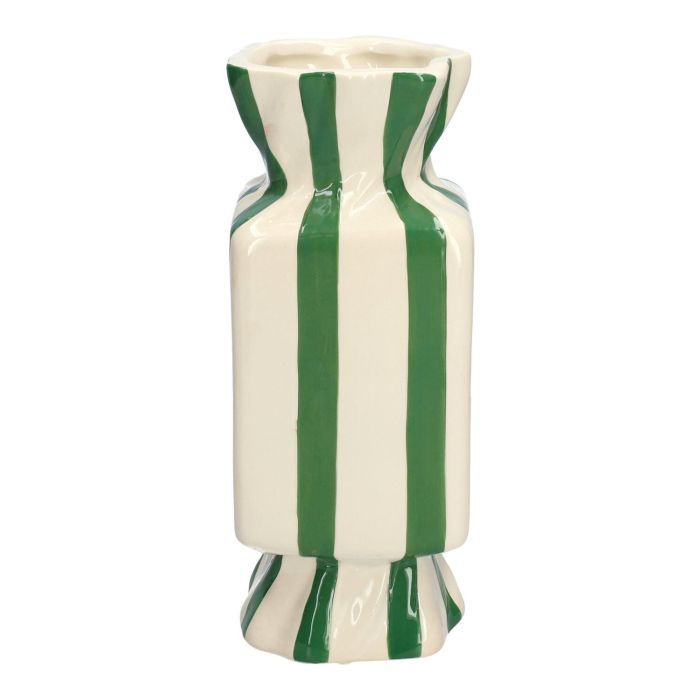 Eckige Stielblumenvase Bonbon AMIEL aus Keramik, mit Längsstreifen, grün-weiß, 10x10x25cm