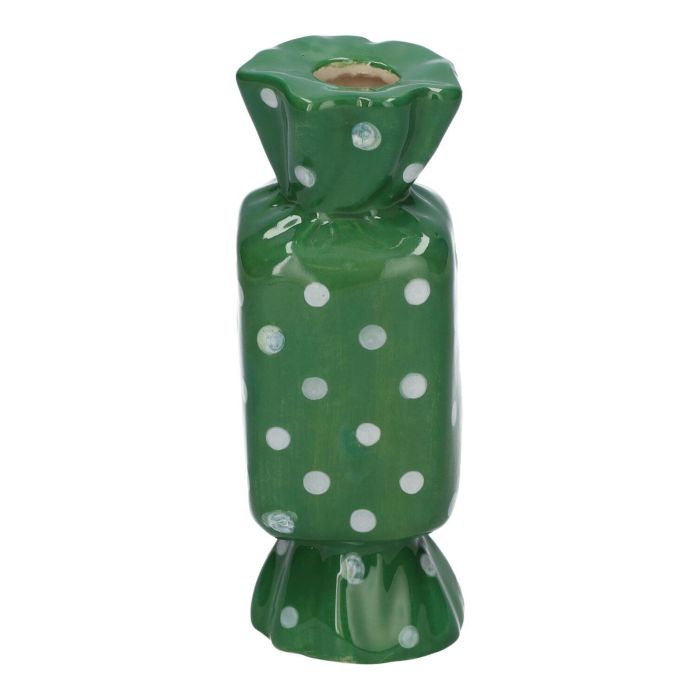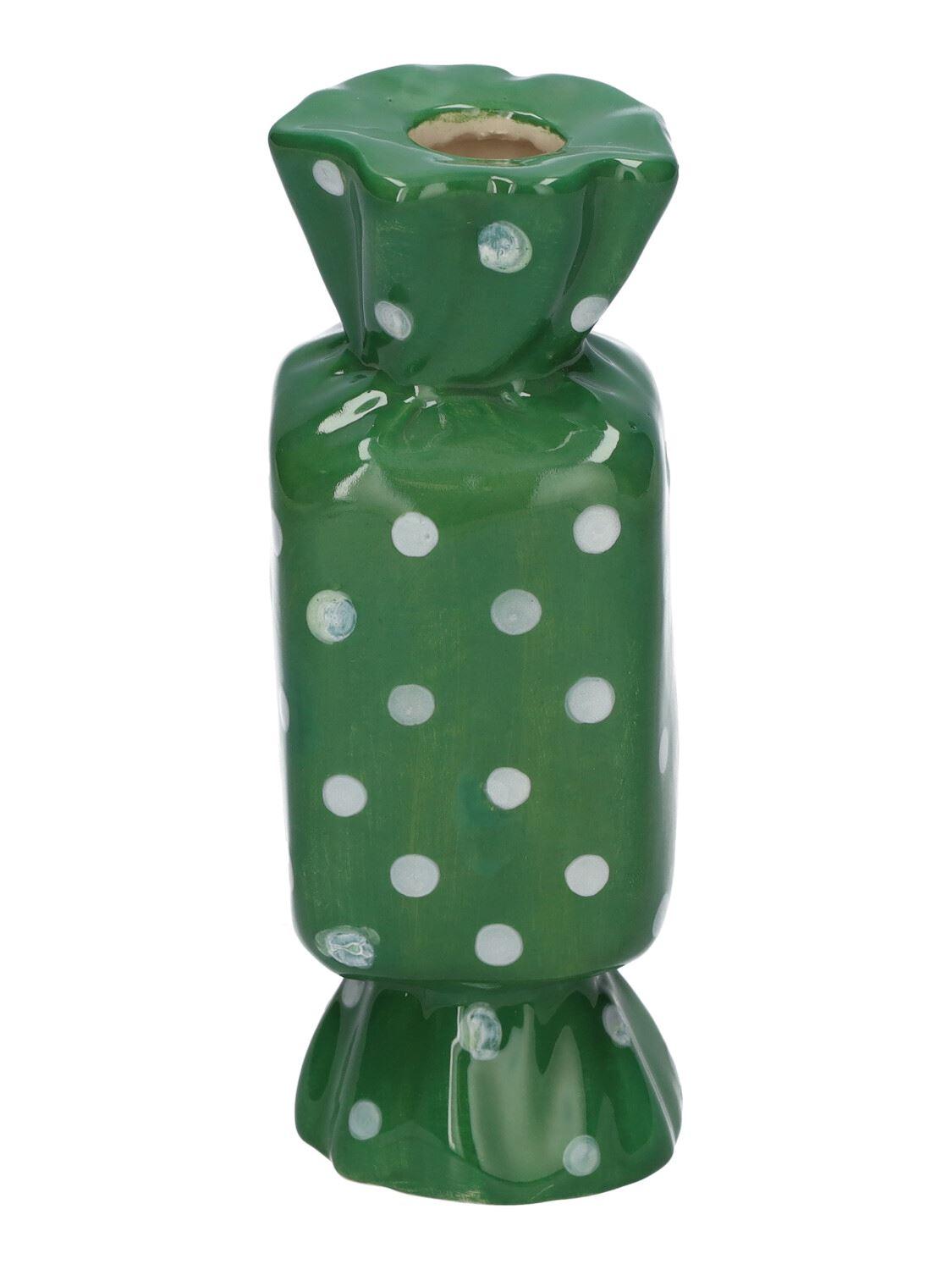 Eckige Stielblumenvase Bonbon AMIEL aus Keramik, mit Punkten, grün-weiß, 4,5x4,5x11,5cm