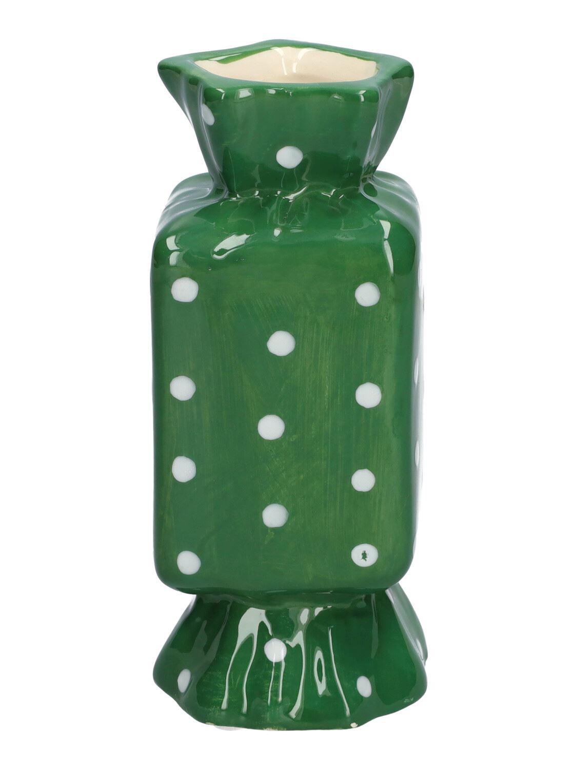 Eckige Stielblumenvase Bonbon AMIEL aus Keramik, mit Punkten, grün-weiß, 6,5x6,5x15cm