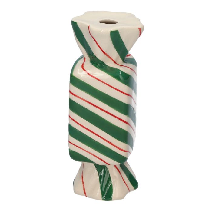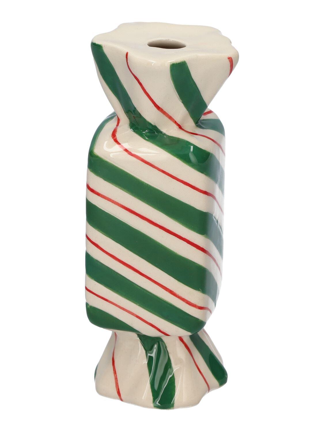 Eckige Stielblumenvase Bonbon AMIEL aus Keramik, mit schrägen Linien, grün-rot-weiß, 4,5x4,5x11,5cm