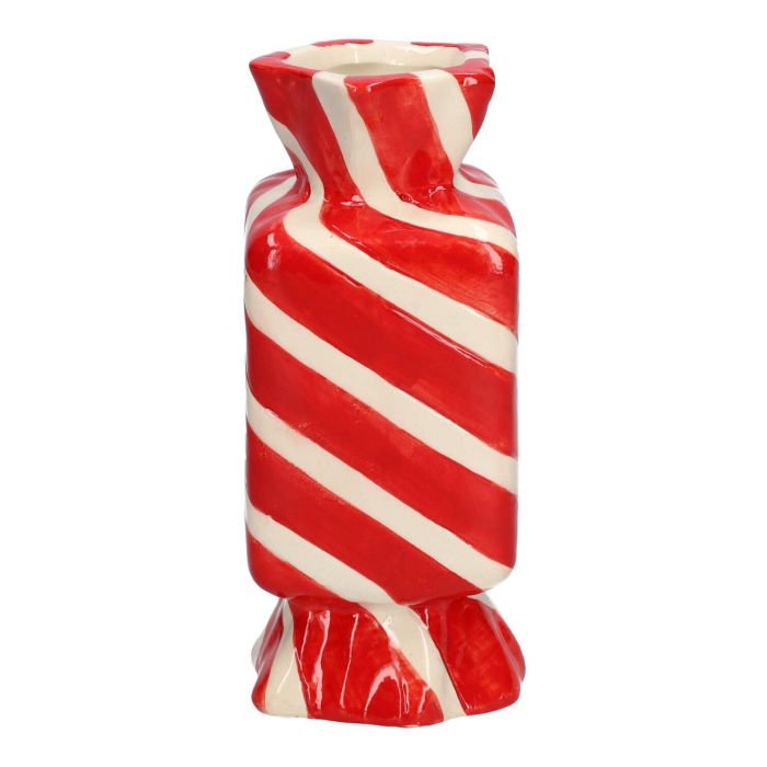 Eckige Stielblumenvase Bonbon AMIEL aus Keramik, mit schrägen Linien, rot-weiß, 6,5x6,5x15cm
