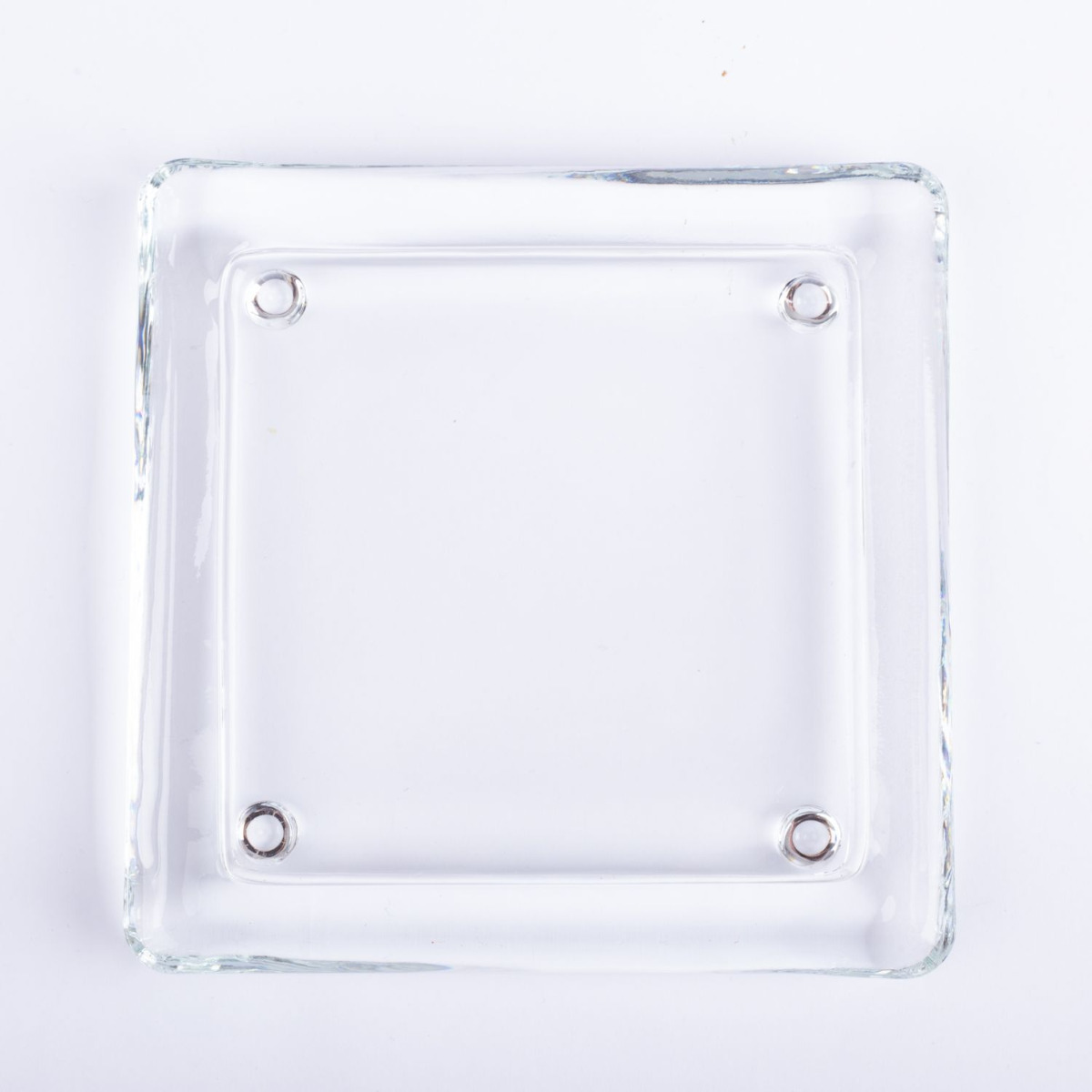Eckiger Kerzenteller VINCENTIA aus Glas, klar, 13,6x13,6cm