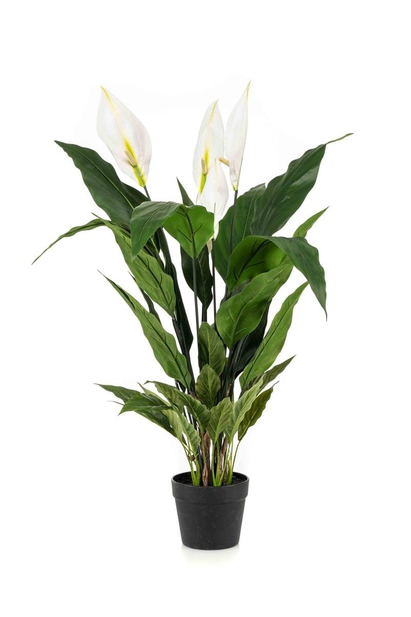 Einblatt Kunstpflanze RANIESO, Dekotopf, Blüten, weiß, 90cm