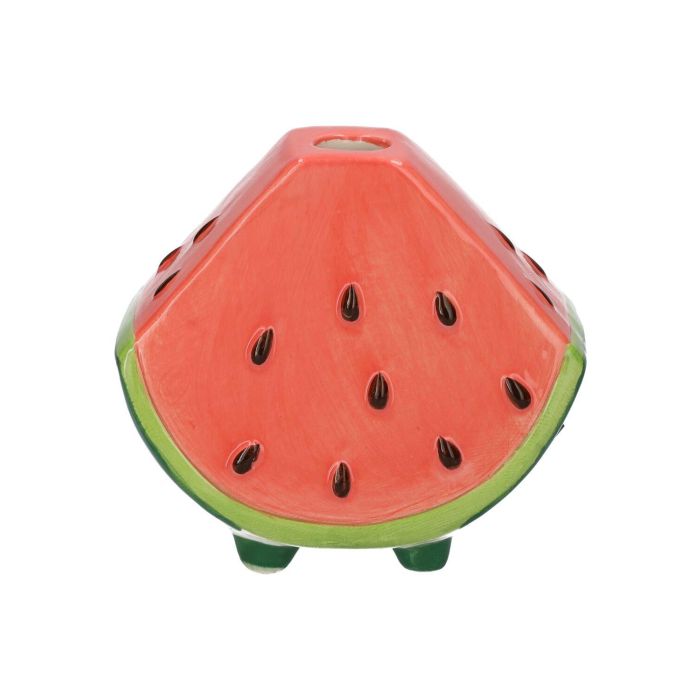 Einzelblumenvase Wassermelonenstück TILLAS aus Keramik, mit Füßen, rot-grün-braun, 10x6x8,7cm