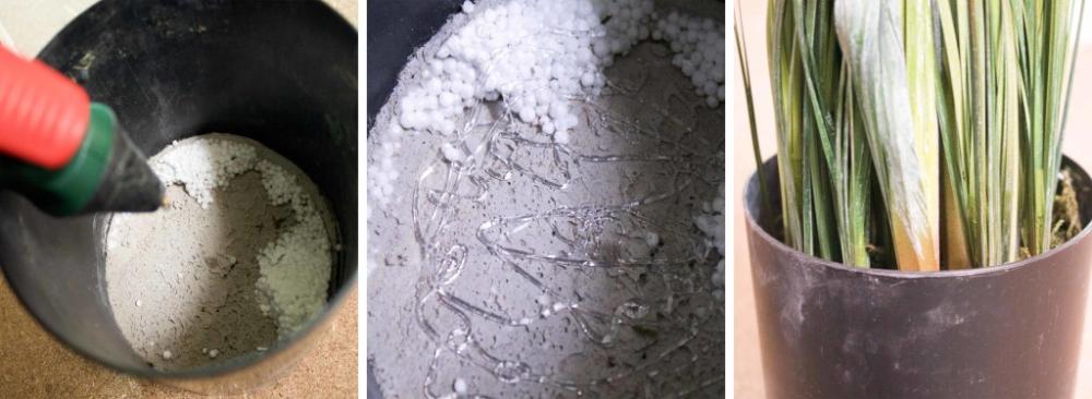 Bei unserem nächsten Patienten hat sich beispielsweise der künstliche Grasbüschel aus seinem Topf gelöst. Wie können wir helfen? Die Lösung ist einfach – Heißkleber! Diesen einfach am Topfboden und auch entlang der Seiten großzügig verteilen und danach die Pflanze fest im Topf andrücken. So sind beide wieder unzertrennlich.