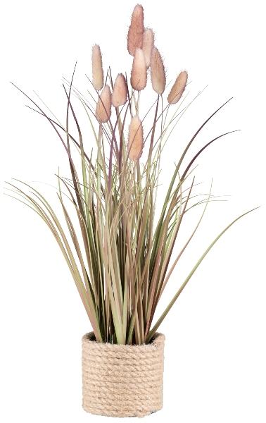 Fake Gras Hasenschwanzgras KERNA im Korb, mit Rispen, rosa, 40cm