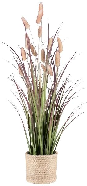 Fake Gras Hasenschwanzgras KERNA im Korb, mit Rispen, rosa, 60cm