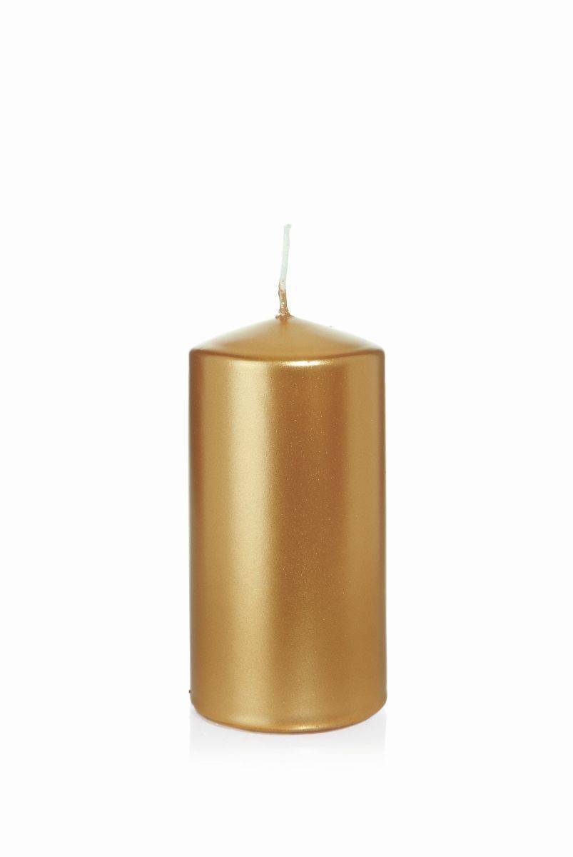 Festliche Stumpenkerze ROSELLA, gold, 12cm, Ø6cm, 40h - Made in Germany