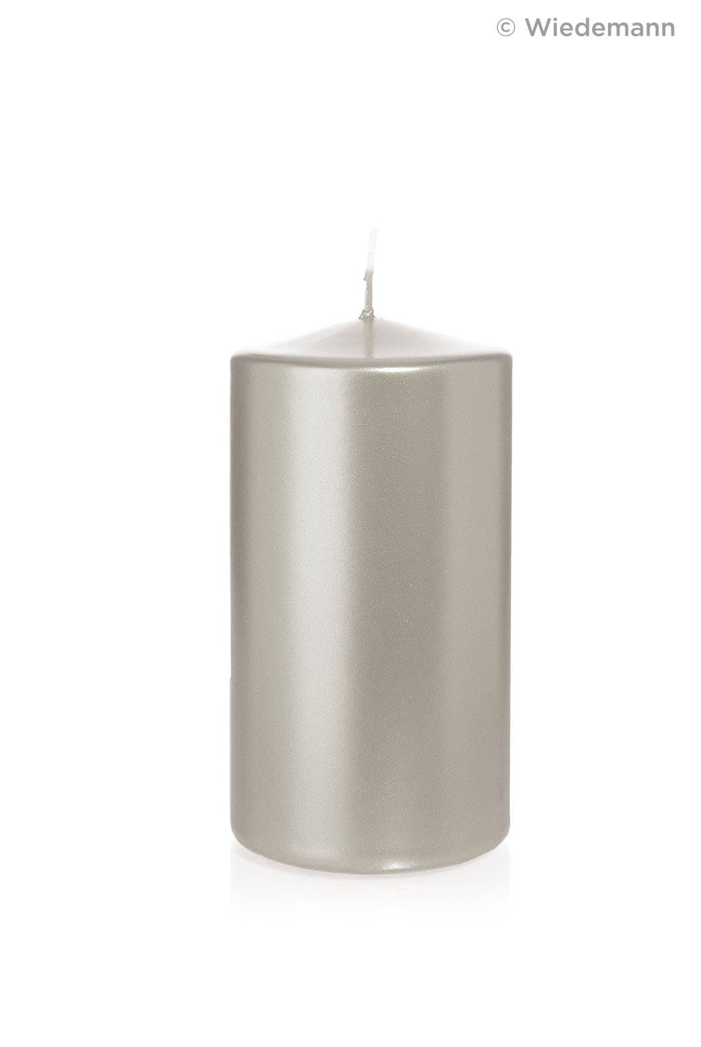 Festliche Stumpenkerze ROSELLA, silber, 13cm, Ø7cm, 52h - Made in Germany