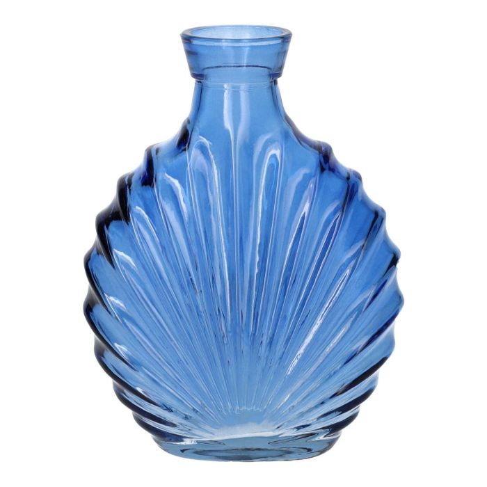 Flache Glas Flasche RACHELLE in Muschel-Optik, kobaltblau-klar, 12,8x5,6x16,8cm
