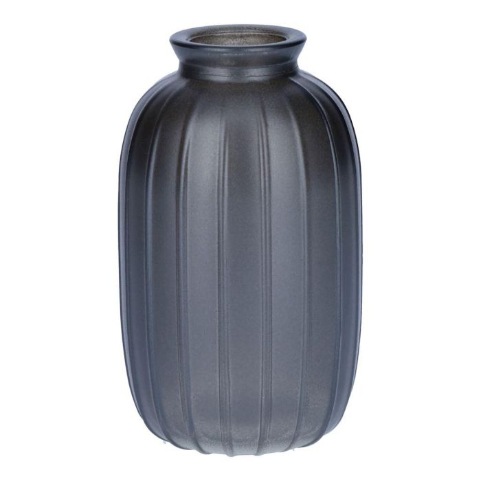 Flasche SILVINA aus Glas, Rillen, grau-metallic, 12cm, Ø7cm