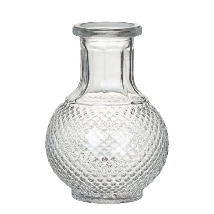Flaschenvase Glas DONKA mit Rautenmuster, transparent, 11,5cm, Ø8,5cm