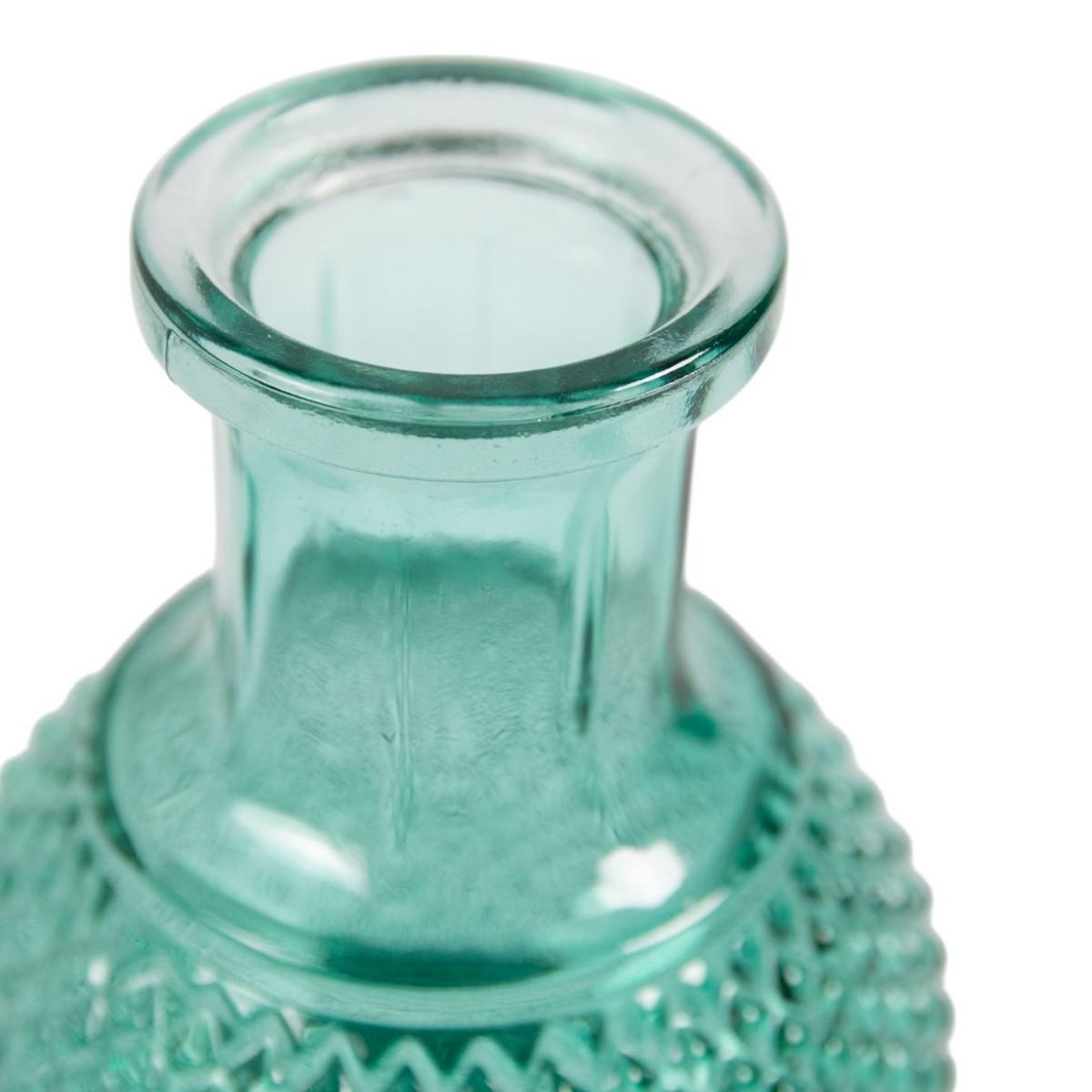Flaschenvase Glas DONKA mit Rautenmuster, türkis-transparent, 11,5cm, Ø8,5cm