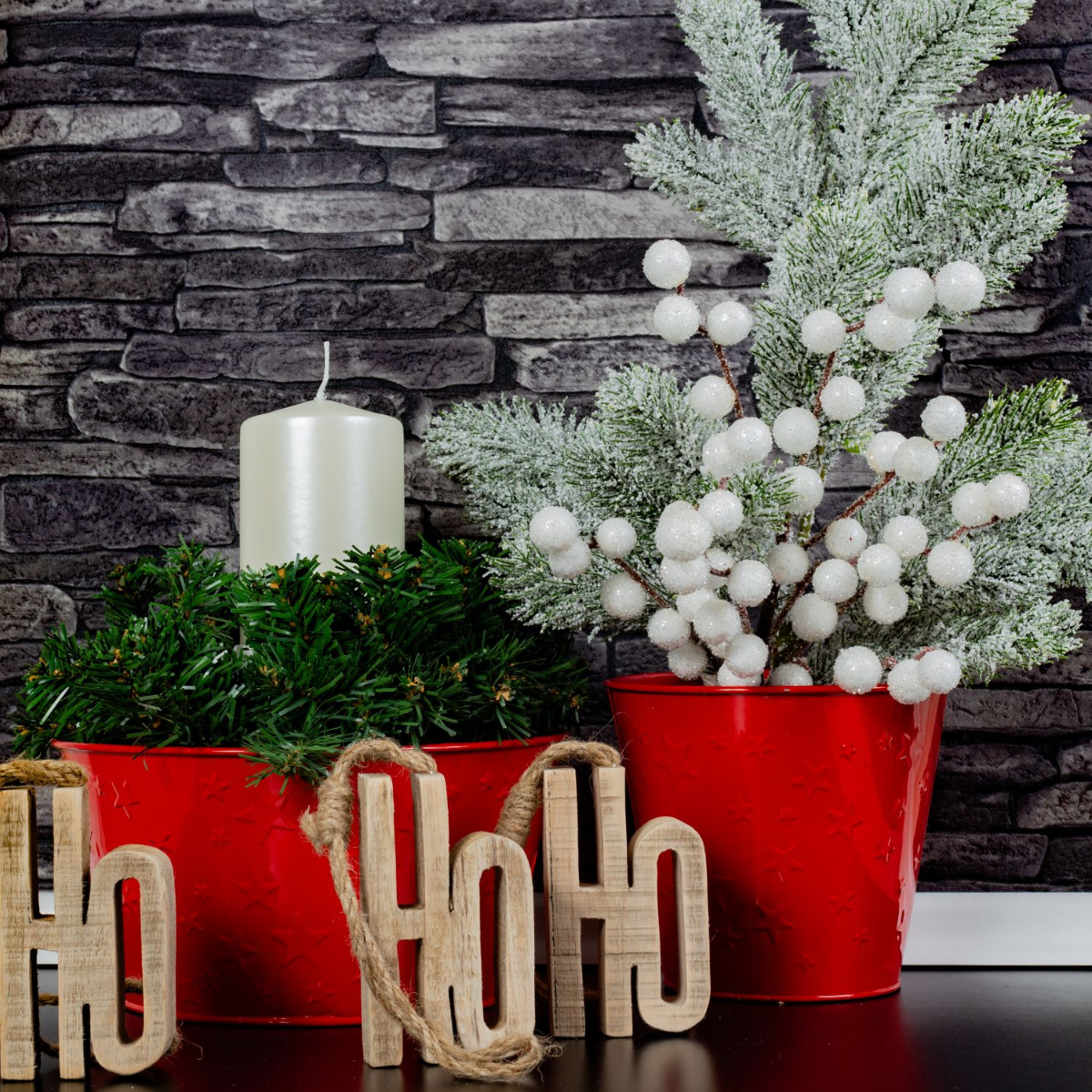 Glanzvolles Weihnachtsfest! Die rote Schale und die rote Keramikvase passen perfekt in die Weihnachtszeit. Setzen Sie den Kranz auf die Schale, und zupfen ihn etwas zurecht, in die Mitte den Kerzenständer mit der Kerze, und schon ist ein Teil Ihrer Dekoration fertig. Die Vase können Sie mit Granulat Ihrer Wahl füllen, darin finden dann der Zierlauch und der Tannenzweig sicheren Halt. Sie können natürlich noch Deko Figuren und kleine Kugeln anbringen. Shop the Look!