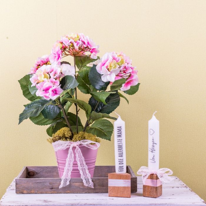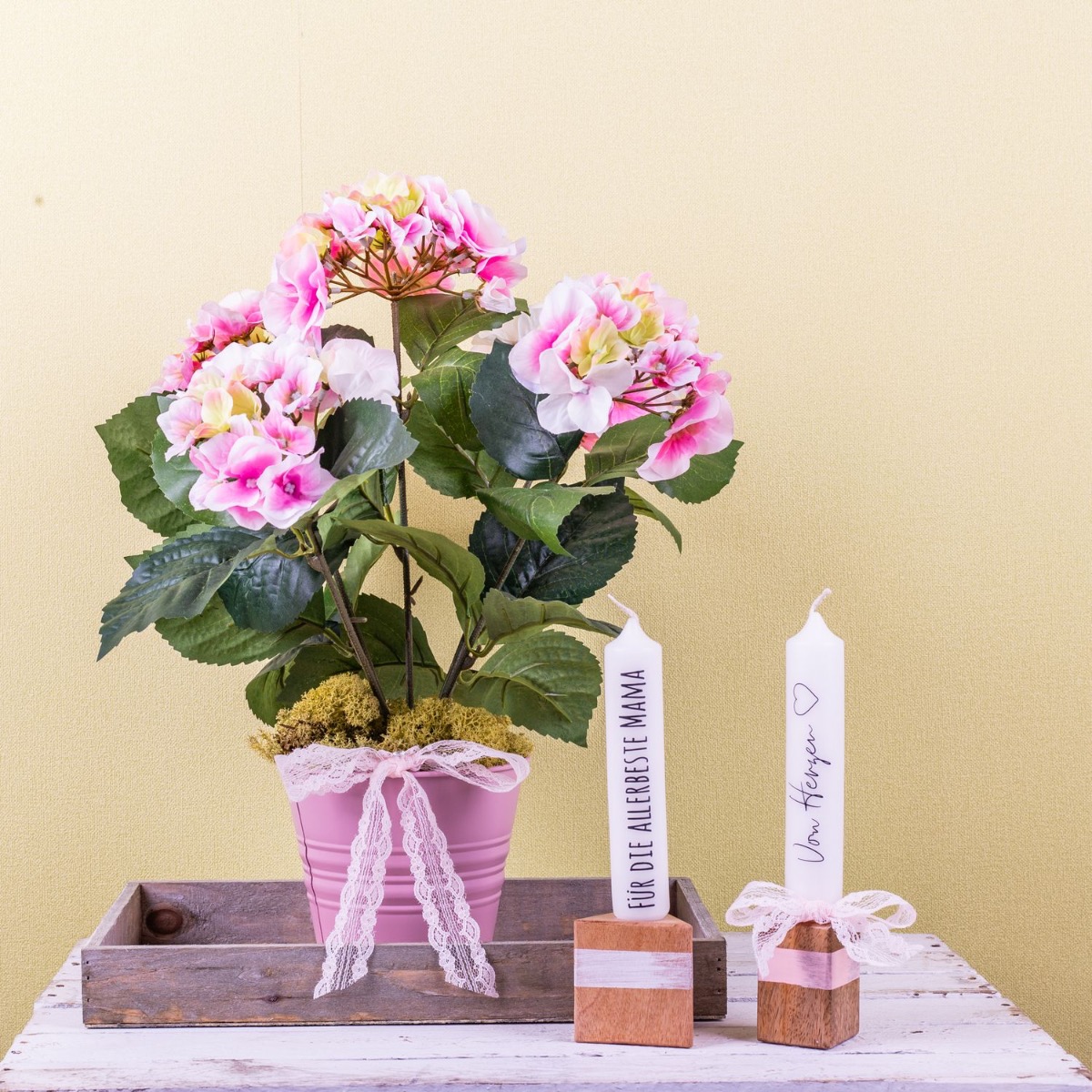 Hortensien und ein Frühstück mit Kerzen! Jede Mutter freut sich, wenn sie von ihren Kindern mit einem liebevoll zubereiteten Frühstück am Bett überrascht wird. Kerzen, die sogar die Botschaft überbringen, eine Topfpflanze und ein guter Kaffee. So wacht eine Mutter mit einem Lächeln auf! Hortensien sind gerade für einen Muttertag eine gute Wahl, denn sie symbolisieren Dankbarkeit und Hochachtung. Das ist die Botschaft, die Kinder ihrer Mutter überbringen sollten. Denkt immer daran, es gibt niemanden, der euch mehr liebt als eure Mutter! Shop the Look!